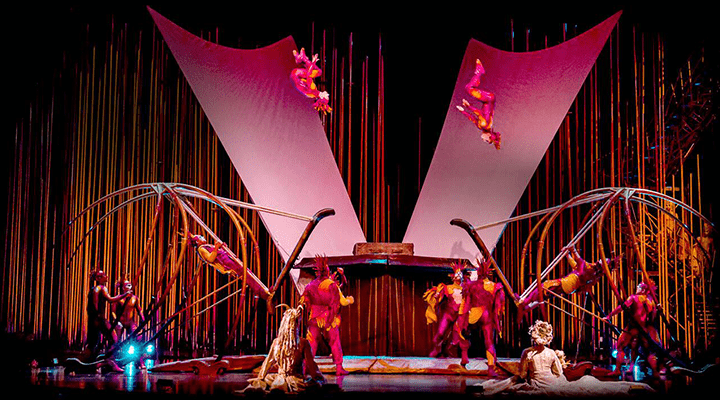 il est assez aisé de collaborer avec des spectacles prévus à proximité en prenant à l’avance les meilleures places en carré Or. Dans ce cas, la configuration du lieu du spectacle, la Halle Tony Garnier, offre la possibilité d’intégrer dans les coulisses, derrière la scène, un réceptif privatif ultra VIP, en « cohabitant » avec les artistes et en l’occurence la troupe du Cirque du Soleil. En collaboration avec la production canadienne de la troupe, des équipes de la Halle, nous avons bati un espace pour l’after, en occultant la visibilité des loges et des lieux de répétitions des artistes. les invités sont conviés à l’issu du spectacle à « passer derrière le rideau de scène » comme les artistes.